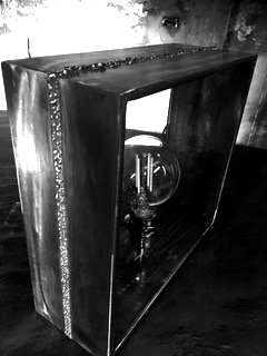 Lampe de table en acier poli avec relief en points de soudure