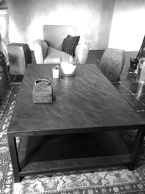 Table basse au design industriel et tendance en ardoise brossée et acier noir, de grand format et de forme rectangulaire, de grande qualité offre robustesse et look tendance et intemporel.